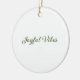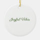 Joyful vibes christmas green holiday family name ceramic ornament