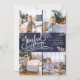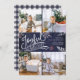 Beautiful typography based holiday photo card features four of your favourite square family photos in a collage layout. "Joyful Wishes" appears in the centre in white hand lettered typography on a navy blue chalkboard background accented with white sketched leaves and red holly berries. Customise with your personal greeting, family names and individual names.