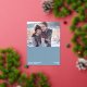 Bring joyful wishes to your friends and family this holiday season with this beautiful, bold vertical photo silver foil Christmas postcard. Simple cursive script over a pretty slate blue background underneath your family photograph. Chic, modern holiday postcards with a picture of your family.