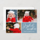 Joyful Wishes Slate Blue 3 Family Photo Holiday Postcard