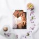 Share your good news this Christmas with this photo engagement announcement/holiday card. It features a single full bleed photo with the words "joyfully engaged" on the front in your choice of real gold, silver, or rose gold foil. The o in joyfully is a diamond ring. The back has space for another photo and a short message.