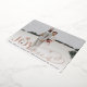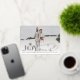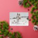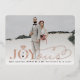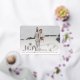 This modern and elegant real foil pressed holiday/christmas wedding announcement card features the word 'Joyous' in a mix of classic serif and whimsical calligraphy script with the couple's monogram embedded within a unique diamond ring overlaying a full bleed photo.