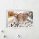 This modern and elegant holiday/christmas engagement announcement / save the date card features the word 'Joyous' in a mix of classic serif and whimsical calligraphy script with the couple's monogram embedded within a unique diamond ring overlaying a full bleed photo.