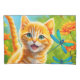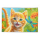 A cute orange tabby kitten frolicking in a flower garden with colourful dragonflies.