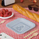 A very special addition to this collection, this plate has a pastel blue background and the “Noel” tree in the middle. The rim is covered with falling scow. A pretty complement to the smaller plate in this collection.