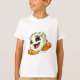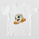 100% cotton so perfect for summer, It is a nicely designed t-shirt, the fabric is soft and the seams finished well, the body of the t shirt has no side seams. I bought a medium size for my two grandsons, aged 9 and 8 it will be slightly big on them but I would rather that than too small