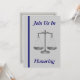 This blue and grey invitation is decorated on the front with the scales of justice. You can customise this card by placing your information into the boxes provided.