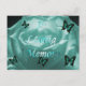 White rose edited with teal hues and butterflies in flight. Photography by Amber Sharp This postcard was created in memory of my son's grandmother. The rose is a flower he was given from her funeral service. She loved butterflies and I thought this design was a beautiful way to incorporate a flower from her service with the butterflies she loved.