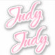 Judy name in cursive script font in pretty pink x2. Two copies of name.