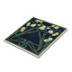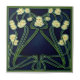 Reproduced from an original antique tile, this European Jugendstil floral tile features yellow-eyed white blossoms on a dark blue ground with stylized green stems and frame. Art Nouveau tiles are highly collectible and make great wall and backsplash tiles for kitchen and bath. They can also be used around a fireplace opening or as trivets, coasters, decorative accessories, and, of course, gifts. This tile is available in 4.5 inch and 6 inch sizes, as well as other items. Can be personalized. Note that although the original is a relief molded tile, our reproduction is a Faux Relief or Trompe l'oeil (fool the eye) style and only looks dimensional. The tile is actually flat and smooth.