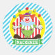 Juggling Big Top Circus Clown; Blue Stripes Classic Round Sticker