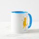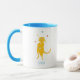 Add a name to create a fun personalised gift for jugglers or for someone who is learning how to juggle. This coffee mug features a cute cartoon illustration of an orange cat juggling balls, and is ready to be personalised with a name or other message in blue lettering.