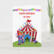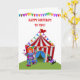A fun and colourful birthday greeting with juggling clown, dog and circus tent. Created with original artwork©delightful-doodles.