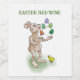 The Easter Bunny juggles the Easter eggs while the little chicken is the audience.