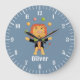 Cute cartoon lion juggling some balls blue wall clock . Personalize it with the child's name if you wish .