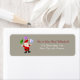 Juggling Santa Claus label features a cute happy Santa, having fun juggling Christmas gifts skilfully, all against a dotted brown background. © Morning 6