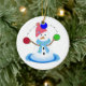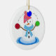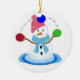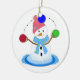 A cool snowman juggling coloured balls of red, blue and green. All wrapped up in his hat and scarf.