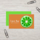 A business card suitable for a Juice Bar, juice shop, green juice or hipster healthy drinks business. This card is stylish, elegant and features an original art watercolour illustration by artist Sacha Grossel of a healthy citrus lime fruit slice against a stylish vibrant orange background. This card is fully customisable to include your own personal details and links to instagram, web or facebook pages.
