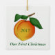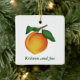Charming ornament featuring a beautiful peach with stem and leaves. Customise you own personal ornament with your name(s) and date. The text "Our First Christmas" can be deleted or changed to meet your needs. Create a delightful Christmas tree for your kitchen using all of the Debi Payne Designs kitchen collection fruits and vegetables.