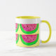Juicy pink watermelon fruit pattern on lemon mug