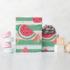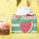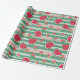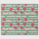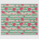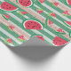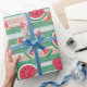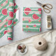 This wrapping paper is great for summer birthdays. The design features illustrative pattern of slices of a watermelon and green and pink horizonal stripes.