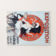 Jules Cheret Exposition Art Nouveau puzzle. Lithography art nouveau poster from 1890s. Jules Cheret was a great master of art nouveau advertisements. Exposition is a clever design featuring a pretty brunette in a fancy white dress painting the announcement of an exposition by Willette. A black cat stands on her paintbox and the script is in red and black. A pretty gift for fans of Jules Cheret, art nouveau, and vintage advertisements.