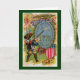 A militiaman uses his rifle to spell "JULY 4" on a wooden plaque in this vintage Fourth of July postcard with an eagle, firecrackers, a tiny cannon and stars and stripes from 1908.