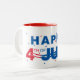 This ceramic coffee mug is shown with a patriotic Happy 4th of July text print.