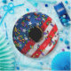 3-dimentional red, white, and blue doughnut with sprinkles.