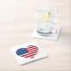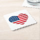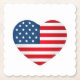 This paper drink coaster shown in a July 4th flag heart print with scalloped edges.