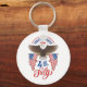 This button style keychain is shown in a July 4th patriotic USA Flag print.