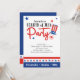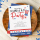 Simple, clean fourth of July party invitation featuring primarily black type, a red, white and blue Uncle Sam hat, and red and blue stars. A great modern look for your July 4 celebration.