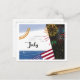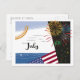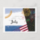 July Art Deco Beach Scene with Flag and Fireworks Postcard