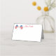 This folded name place card is shown in white with a festive July Fourth Flag print.