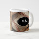 Jumbo baseball monogram coffee mugs with closeup photo of a baseball and old baseball glove and space for any name or initials so you can personalise this large drink mug for your self or as a gift. Perfect for baseball lovers, sports fans, or little league champ.