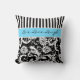 This chic pale blue, black, and white floral damask and striped pattern 20"x20" pillow has customizeable text that says "Live, Love Laugh" on it, but you can customise it however you want. If you have any requests, please email niteowlstudio@gmail.com.