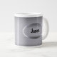 Jumbo guys monogram coffee mugs with masculine industrial looking background and space for custom initials or name so you can personalise this large drink mug for your self or as a gift. Men love to drink out of large drink cups.