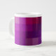 A stylish Jumbo-sized Coffee or Soup Mug with an abstract pattern of pink, blue and purple squares, from a digital design by Judy Adamson.