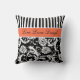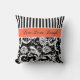 Jumbo Orange Black White Stripes Damask Pillow