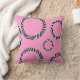 This funky 20"x20" throw pillow has a pink background with an assortment of black and white striped circles on it that will add some chic style to your favourite room. If you have any requests, please email niteowlstudio@gmail.com.