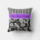 Jumbo Purple Black White Stripes Damask Pillow