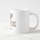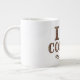 A jumbo size mug with an "I Heart Coffee" saying done in coffee beans and a place to enter your name. A gift that is perfect for yourself or for any coffee drinker.