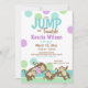 Jump and tumble kid's birthday party invitation with adorable tumbling monkeys and colourful polka dots in purple, blue and green. Monkey around with the text as preferred.