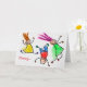 Mummy will love receiving this cute card for Mother's Day! The front of the card has images of three brightly coloured stick children jumping. Colours include yellow, red, blue, green, orange, and pink. The text in red says "Mummy..." The inside text, which is fully customisable, says "We're jumping for joy because it's YOUR day. You are the best mummy in the world. I love you." Very cute, and may be customised to say anything you'd like.
