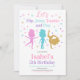 Get ready to flip into fun with our Jump Tumble Gymnastics Birthday Invitation. Featuring a dazzling trio of glitter-style gymnast girls in pink, teal, and gold, surrounded by playful stars and confetti. It's the perfect way to invite friends to a high-energy celebration full of flips, cartwheels, and sparkle. Whether she's a tiny tumbler or a future floor champ, this invite captures the spirit of gymnastics with a fun, girly twist. Let your little gymnast shine from the very start, this invitation kicks off the party with style, sparkle, and movement! BRT301
