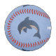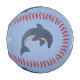 This baseball is a shiny blue colour with four jumping dolphins who are dark blue with white stomachs and have black and white swirl eyes. Customise your text with the templates.