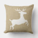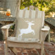 White jumping deer silhouette image on a trending faux jute burlap linen textile fabric texture pattern. A modern exterior home farmhouse style decor accent for decorating your backyard outdoor patio or front porch of your mountain log cabin, country cottage, rustic lake or river vacation home.