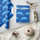 This wrapping paper features a jumping dolphins in a half drop reflection pattern.