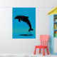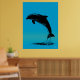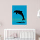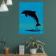 Jumping Dolphin Poster – Black Silhouette on Blue