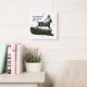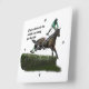 Jumping Horse & Jockey In Green, Wall Clock. Digital Art. "If you climb into the saddle, be ready for the ride." Here's to the not-so-easy rides. Steeplechase racehorse & jockey in green. Edit the wording to your liking, add the remaining numbers, or remove them completely.
